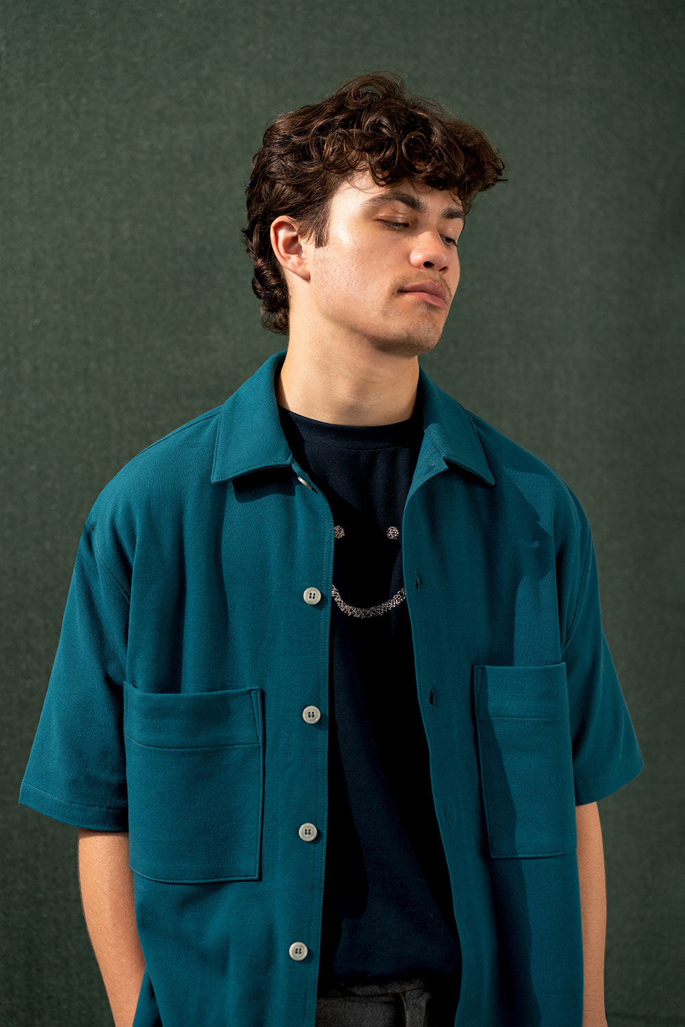 Pique T-Shirt Charcoal Blue Smiley