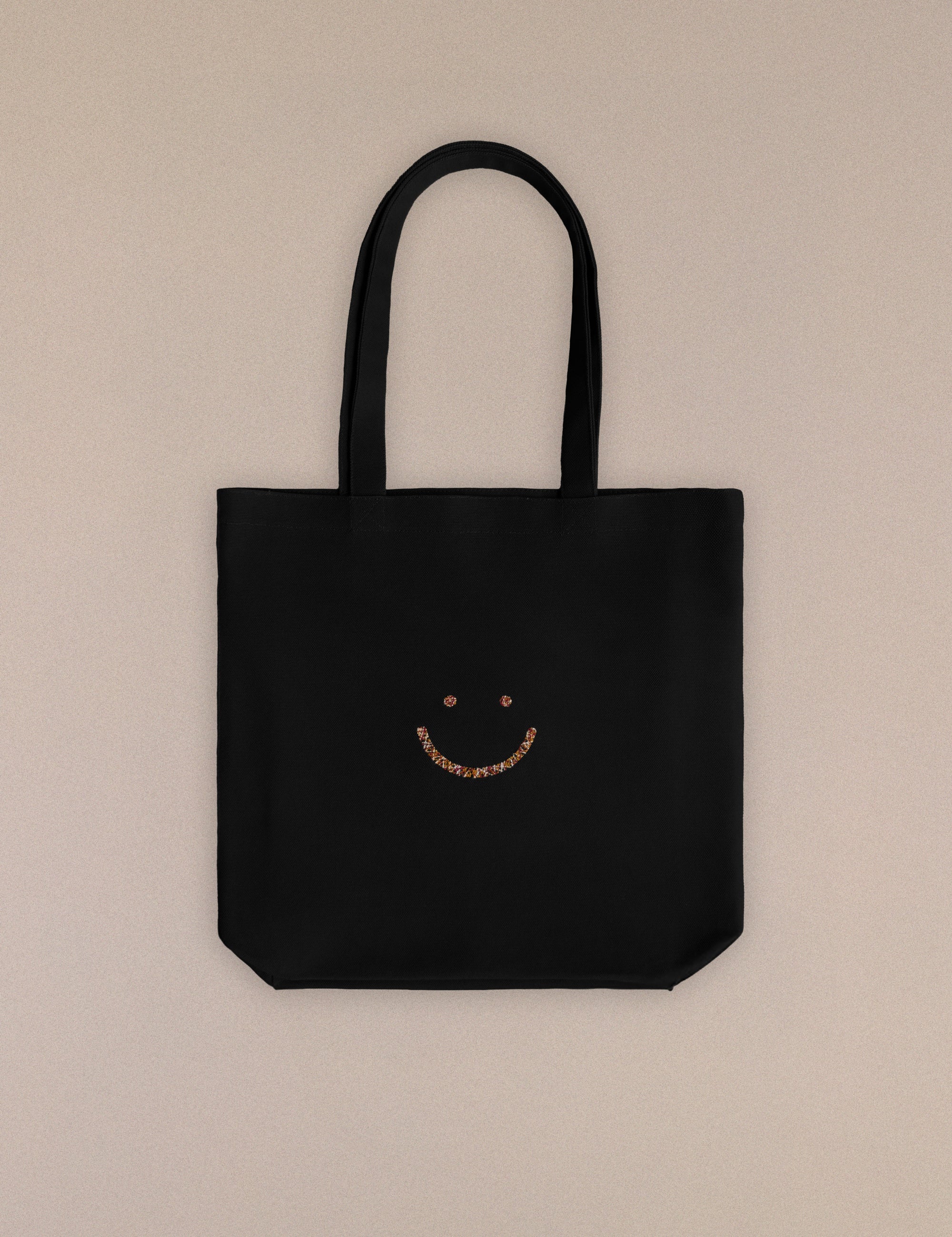 Tote Bag Triple Stitch Smiley Black Canvas