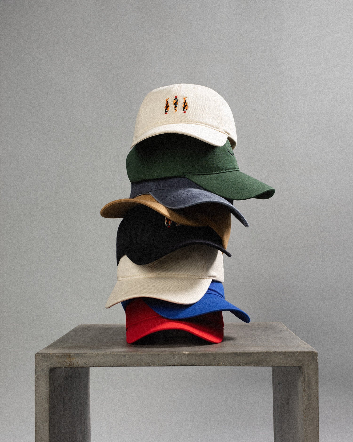 A classic cotton cap finished with our twin origami crane embroideries across the front panel. Subtle Bandsome script embroidery sits at the back, with an adjustable strap and metal buckle for a comfortable everyday fit.