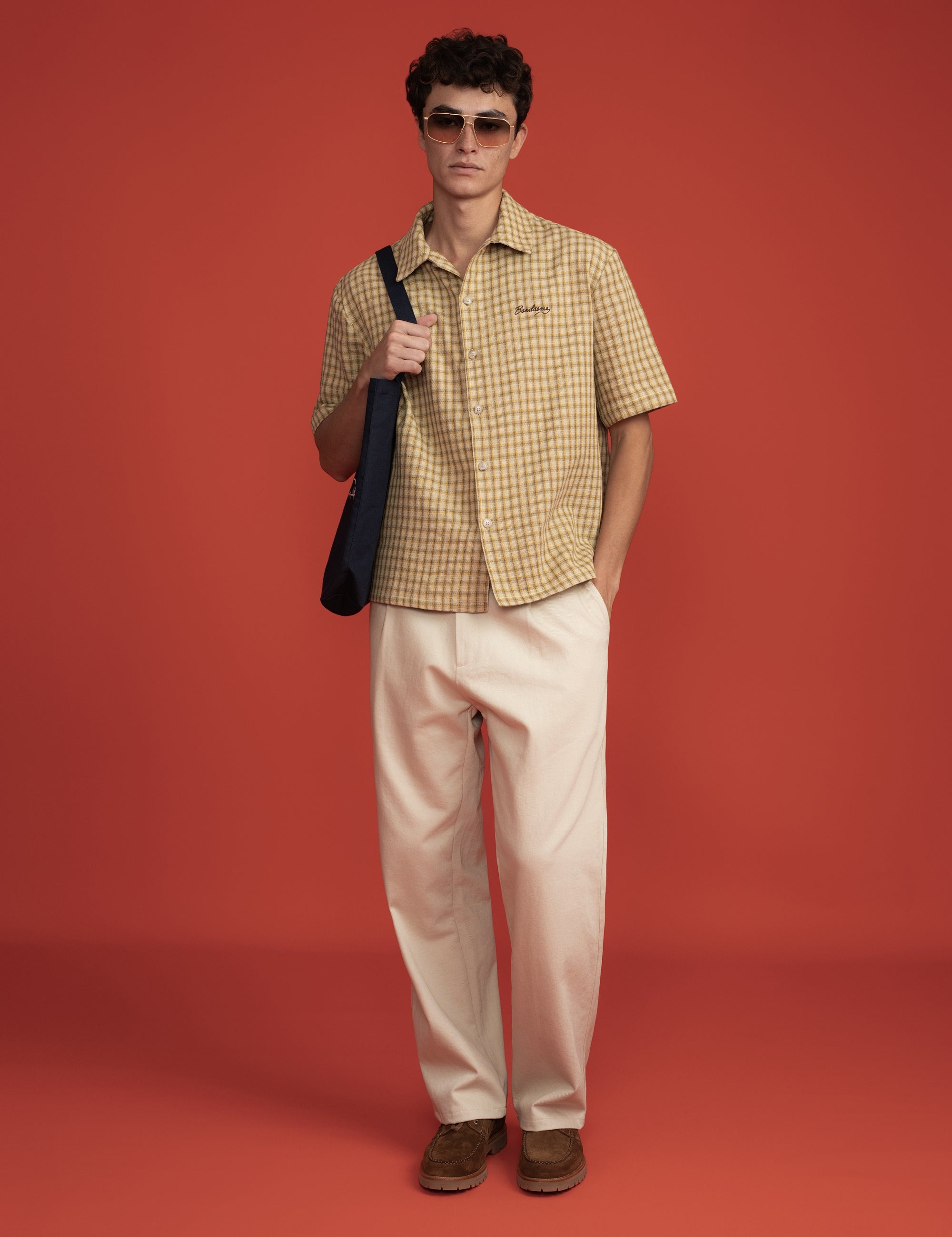 SS Button Shirt Cream Check Logo