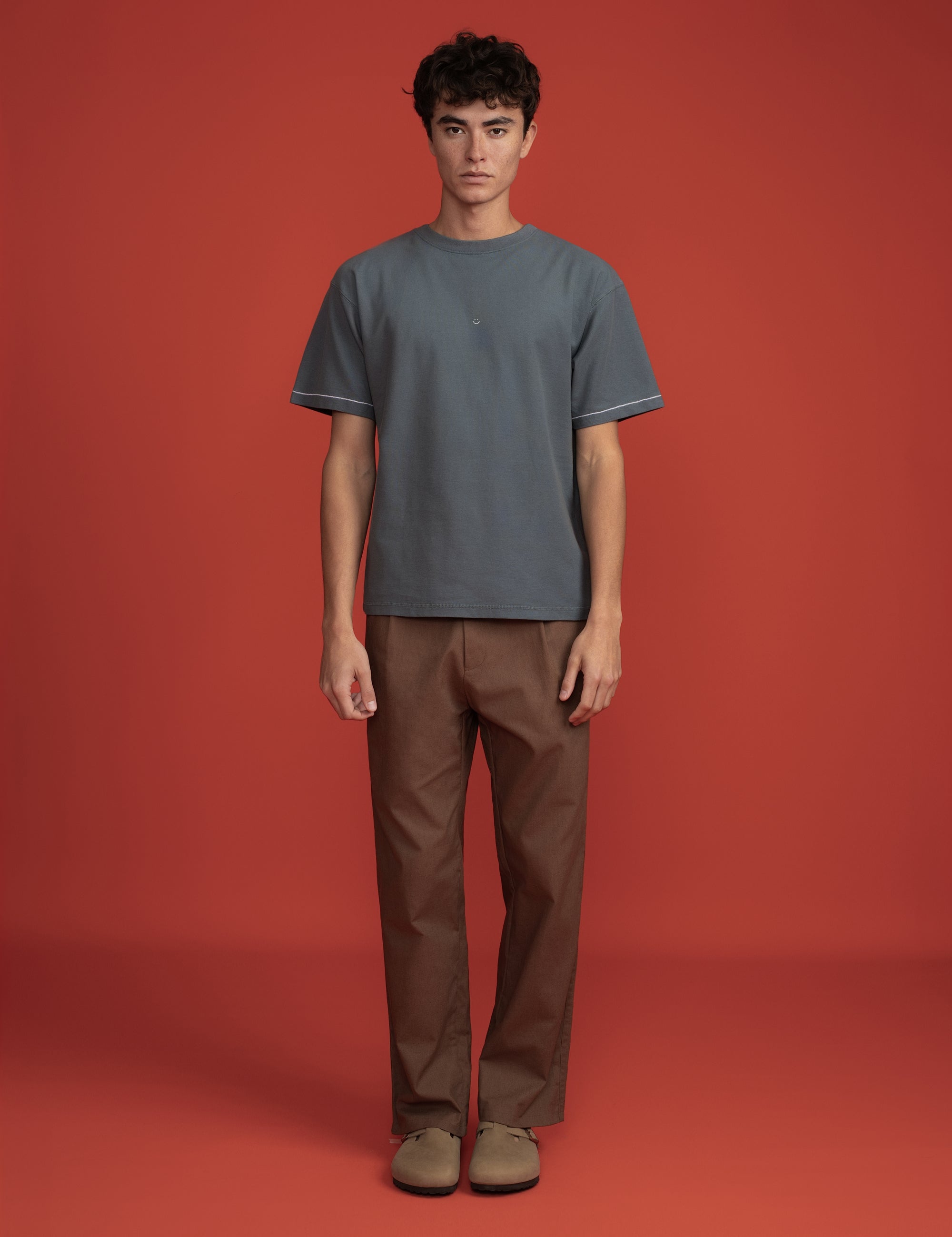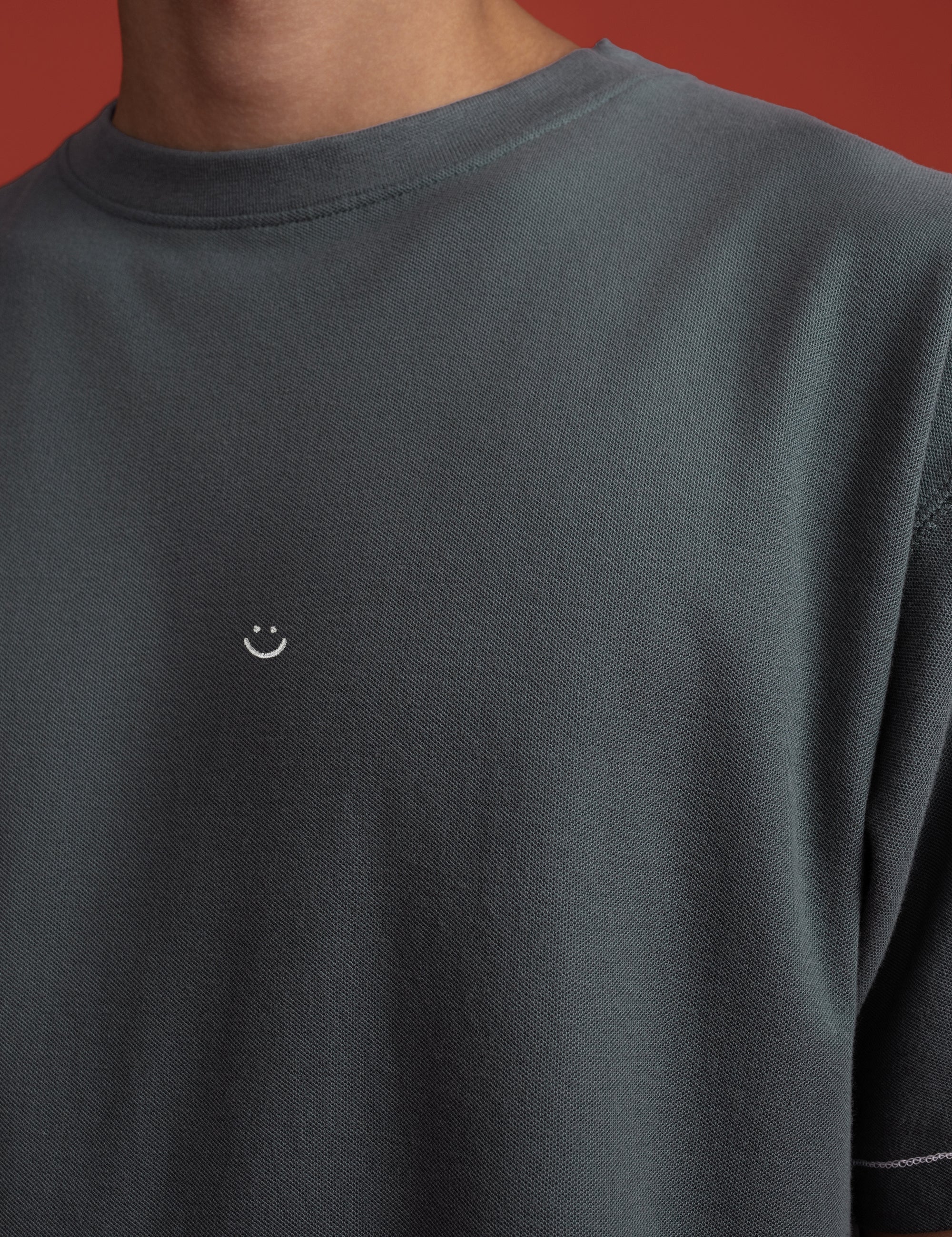 Pique T-Shirt Charcoal Blue Triple Stitch Smiley