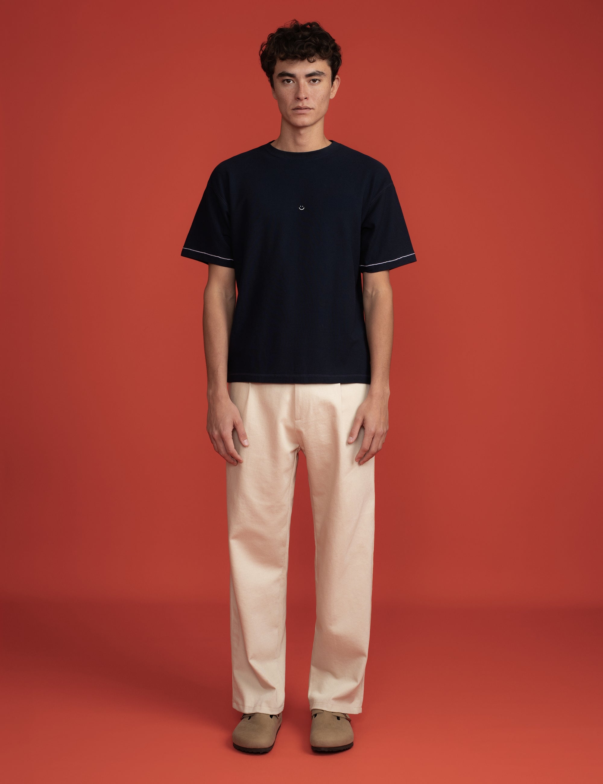 Pique T-Shirt Navy Triple Stitch Smiley