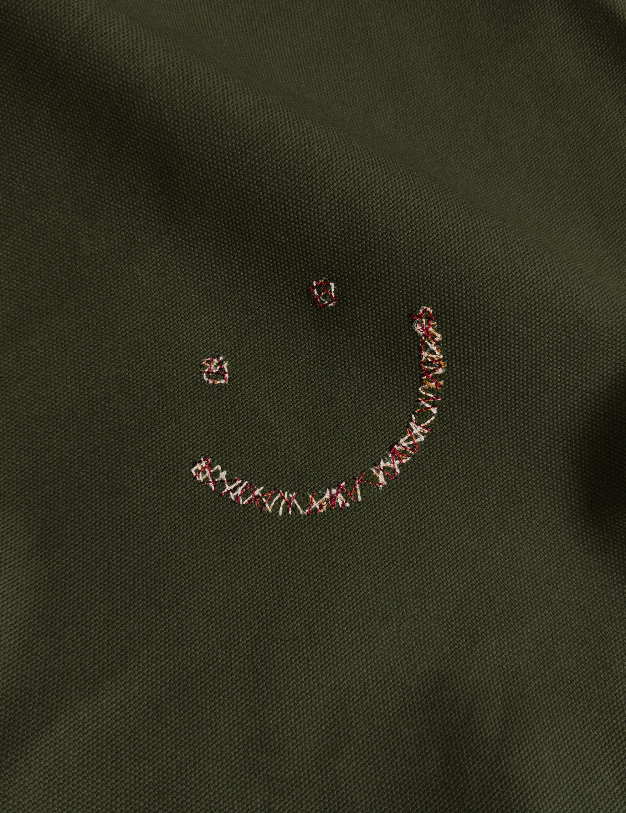 Tote Bag Triple Stitch Smiley Olive Canvas