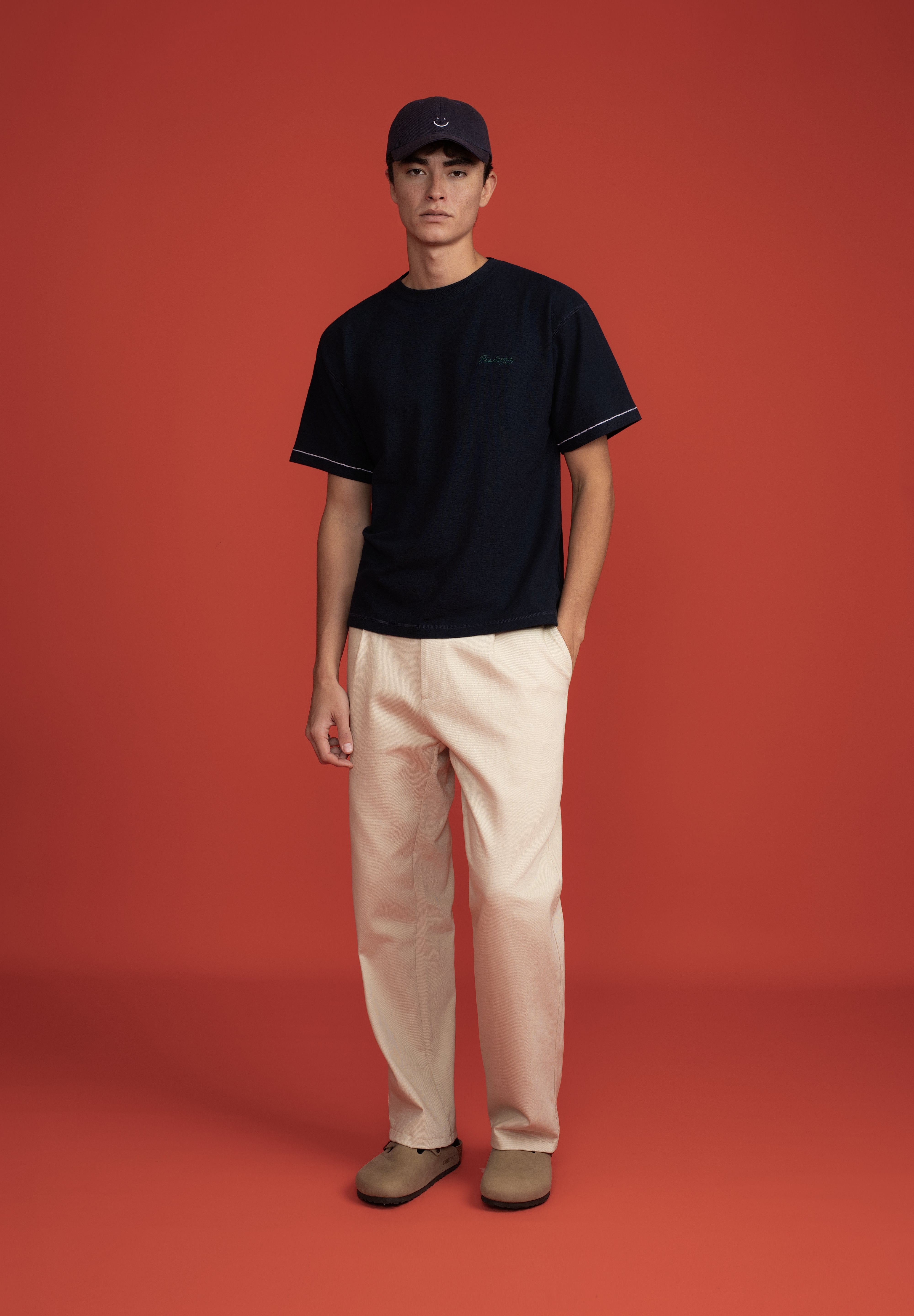 Pique T-Shirt Navy Triple Stitch Smiley