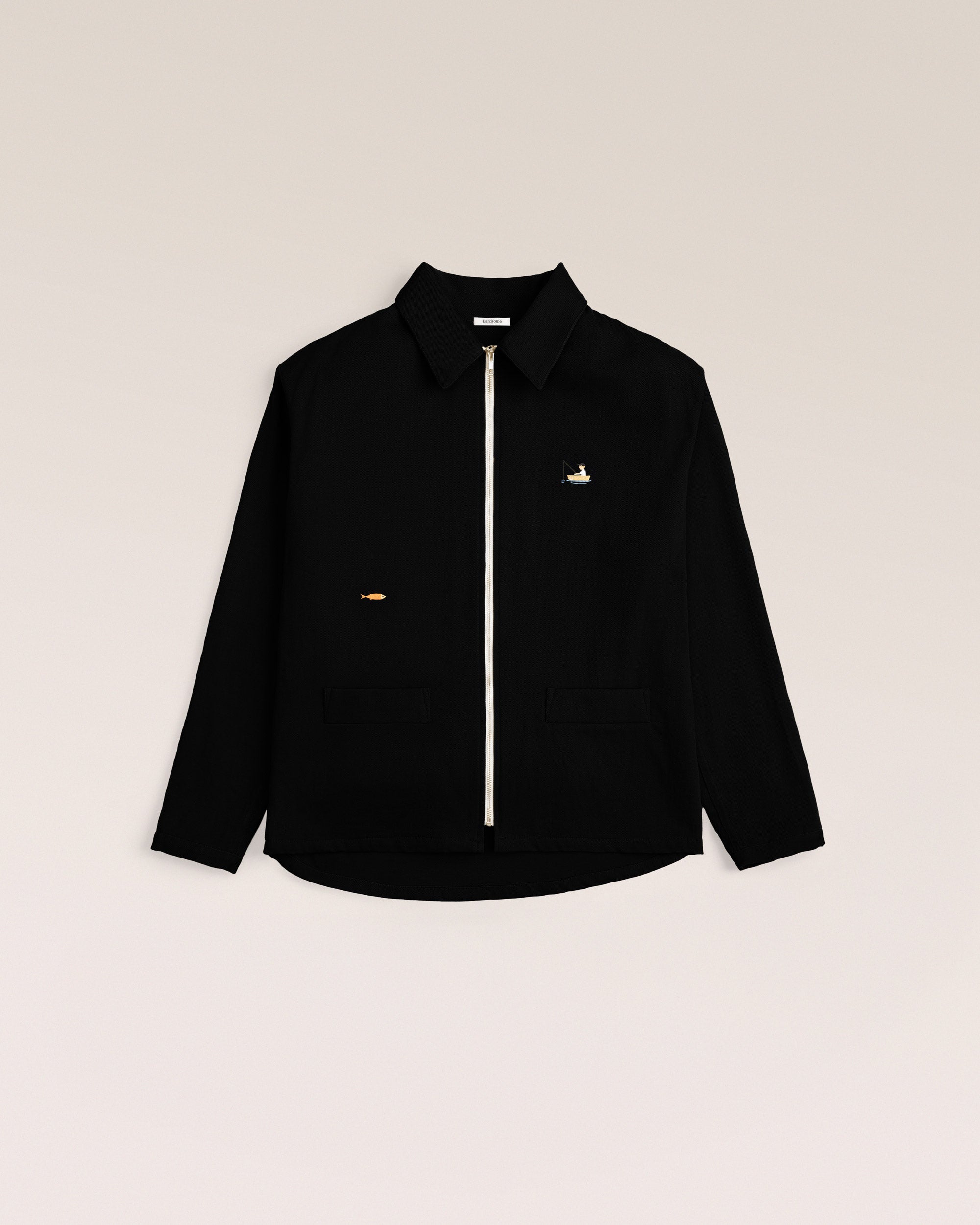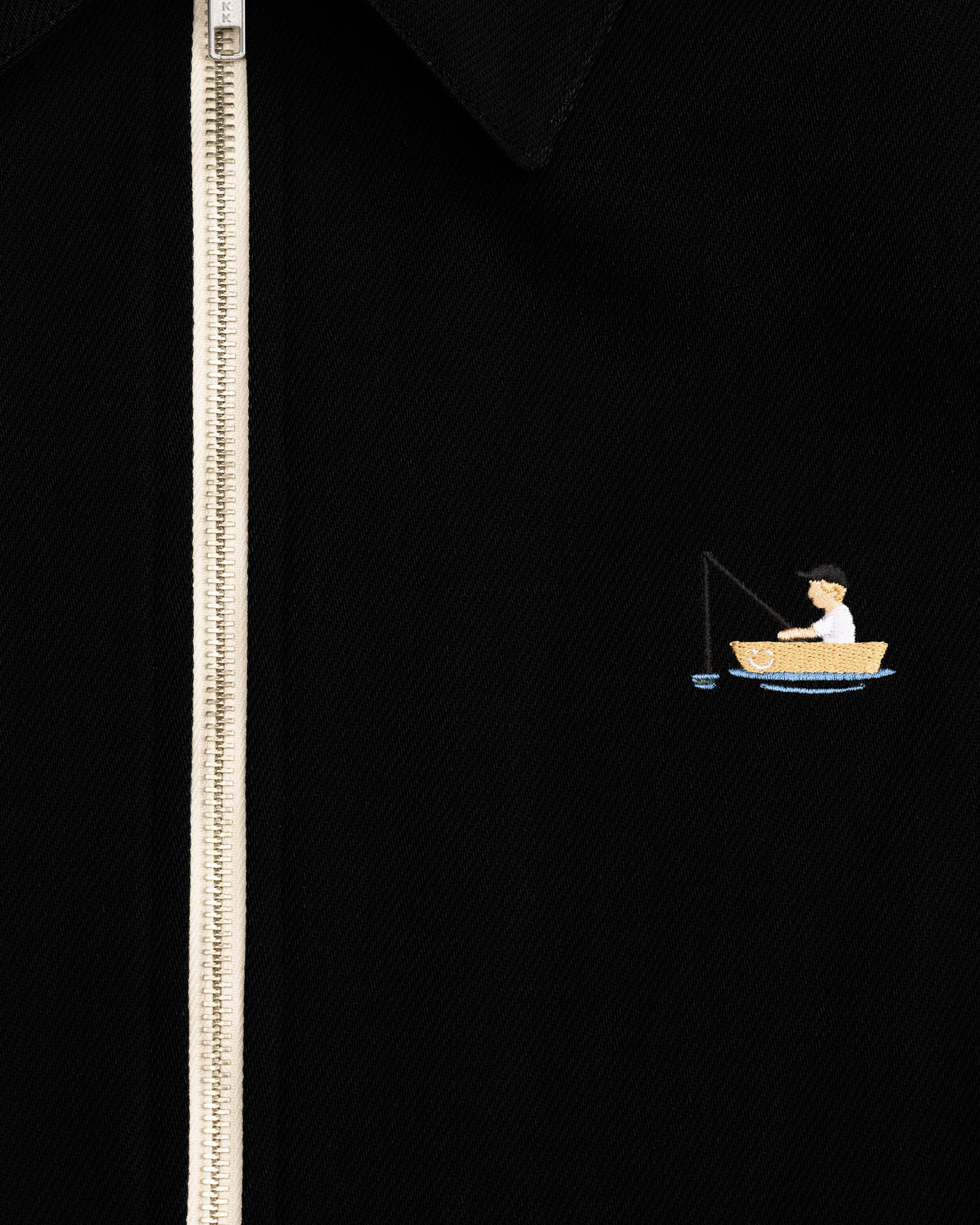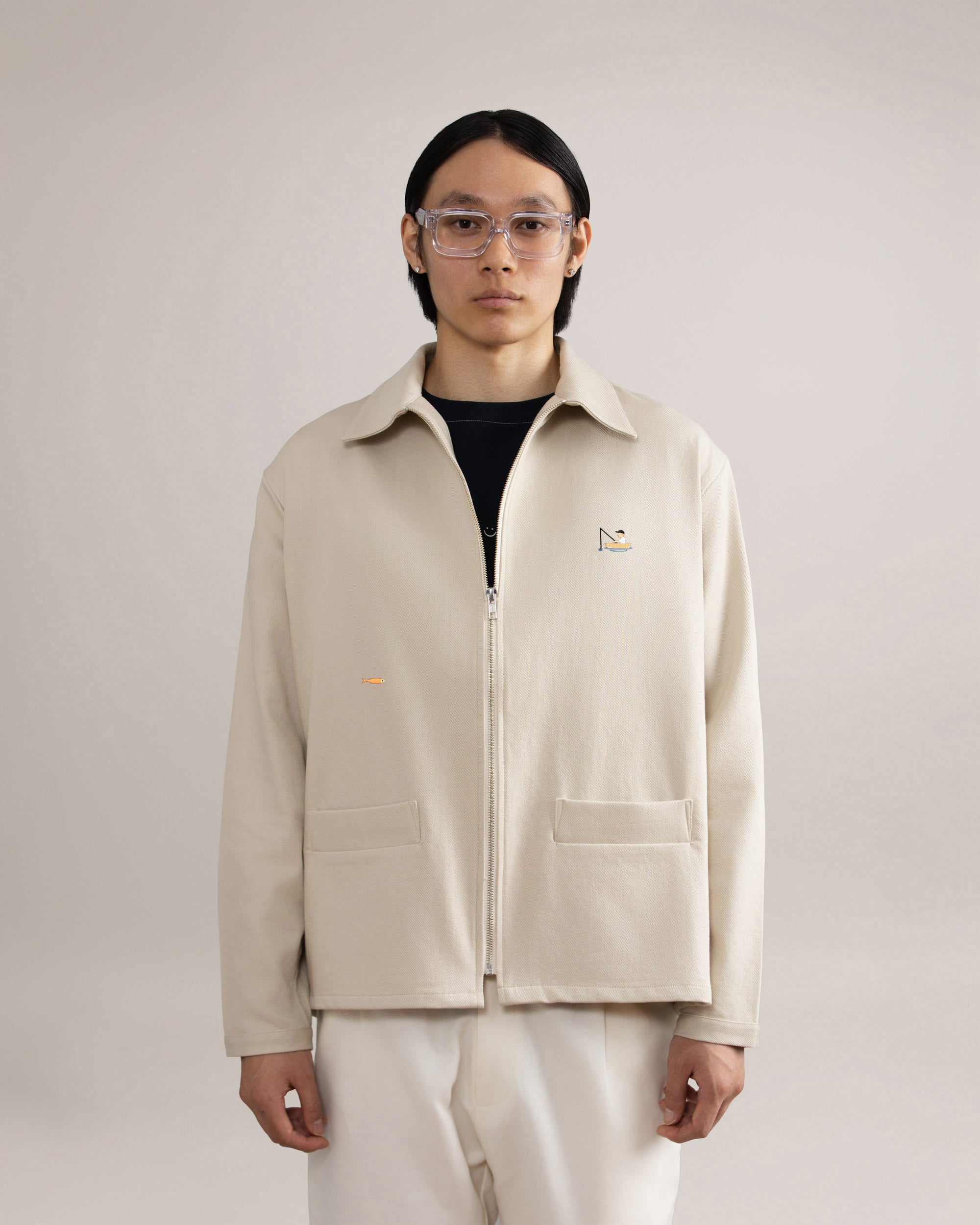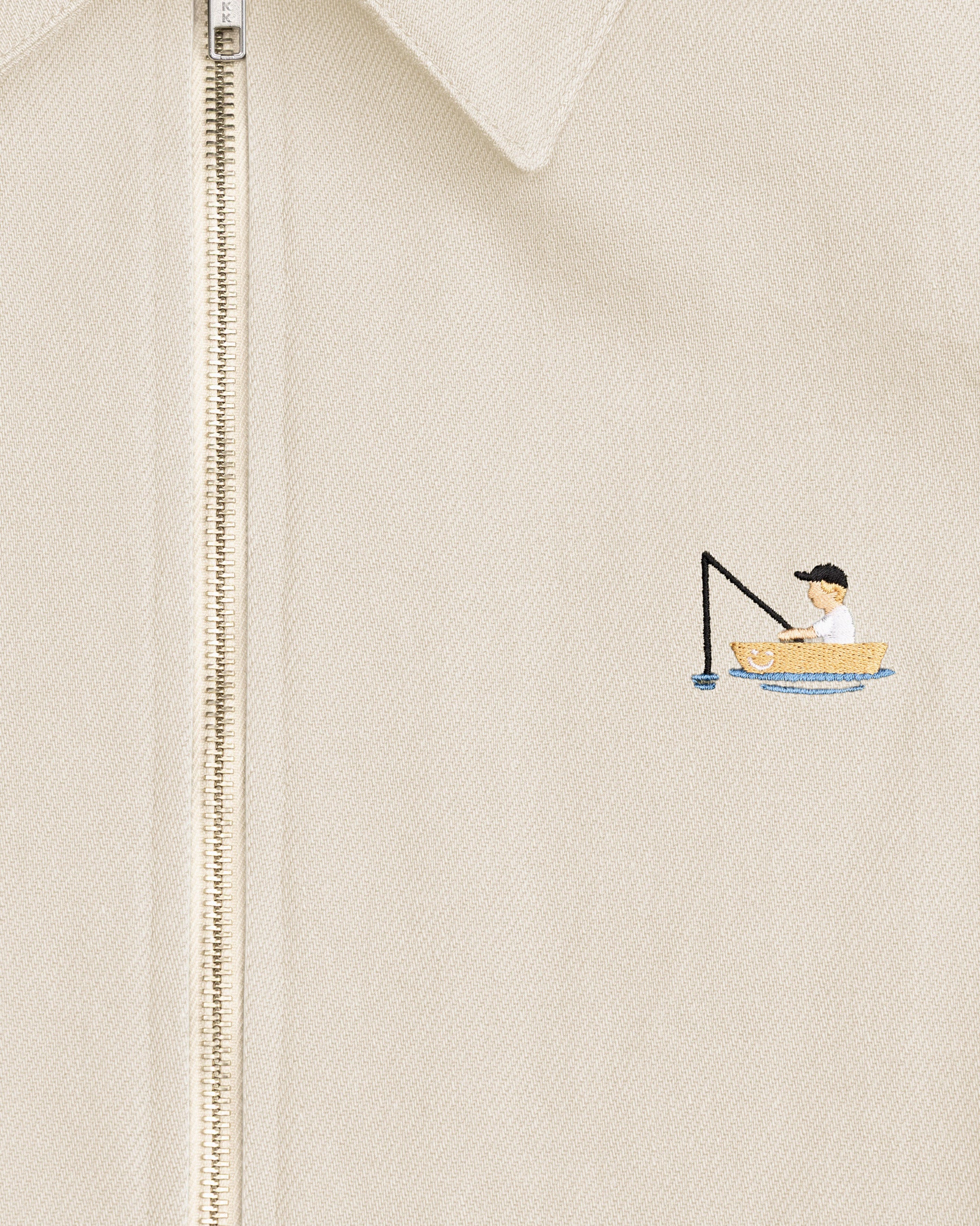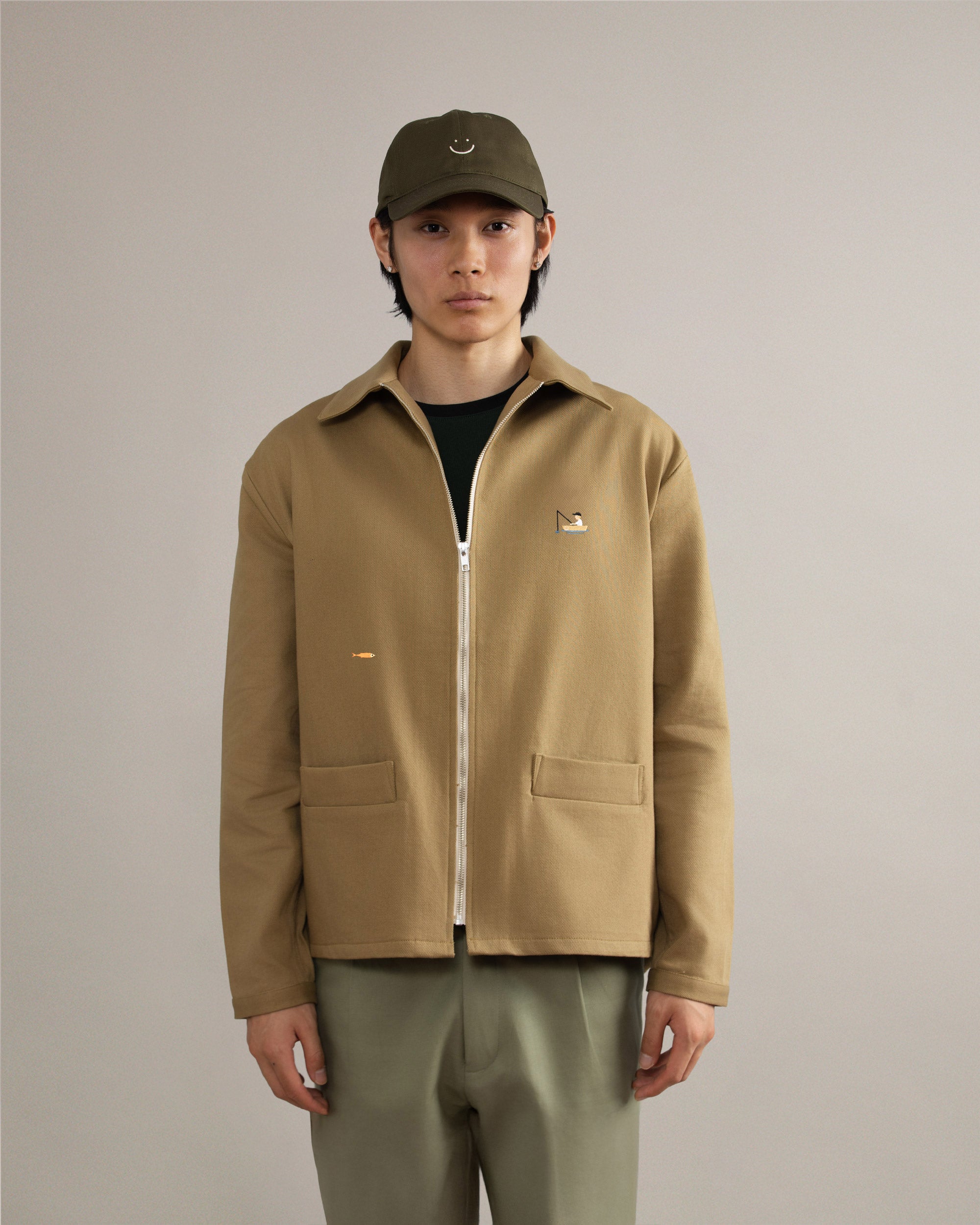 Bandsome LS Drill Zip Jacket in Camel Flower Smiley - Australian made organic cotton jacket