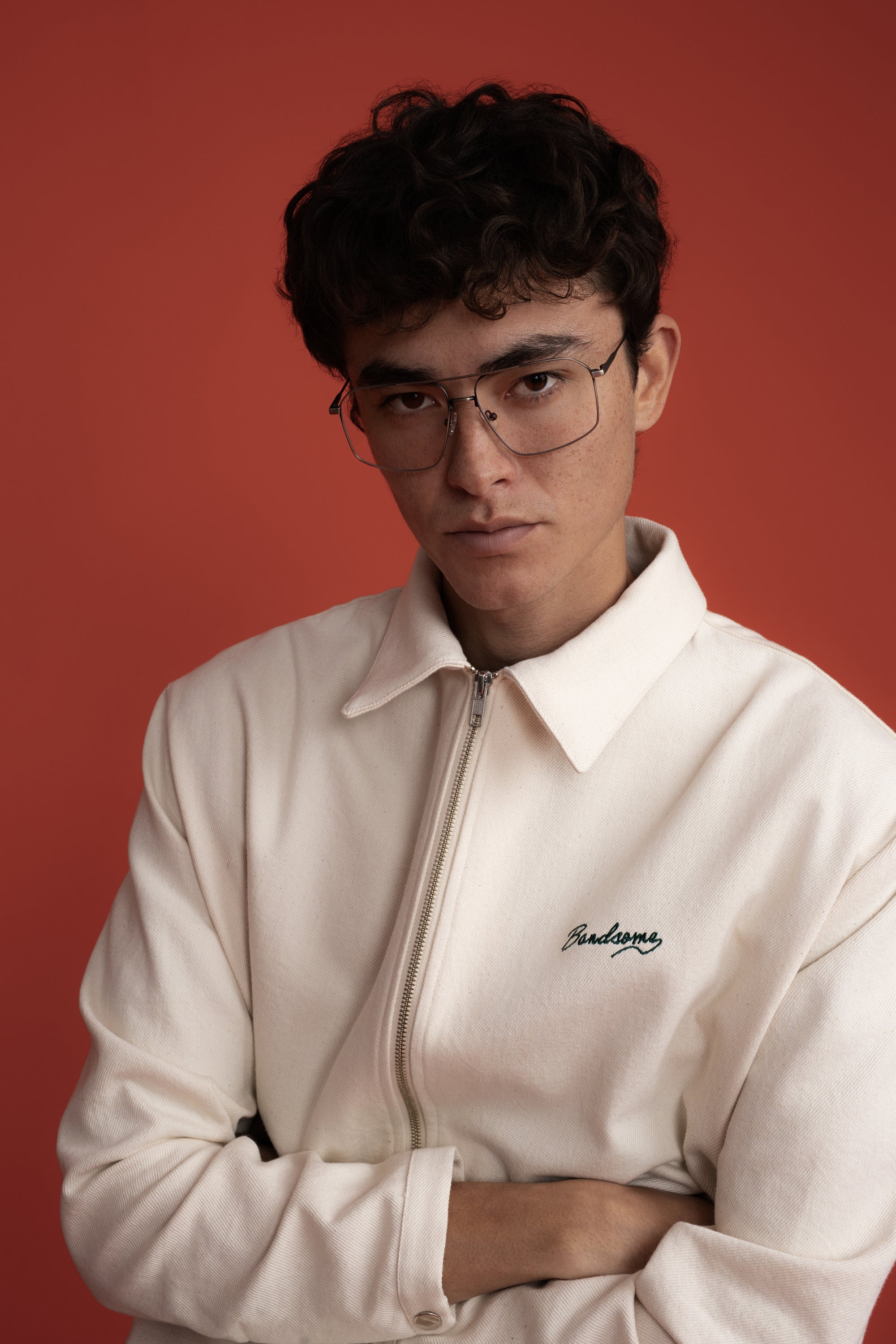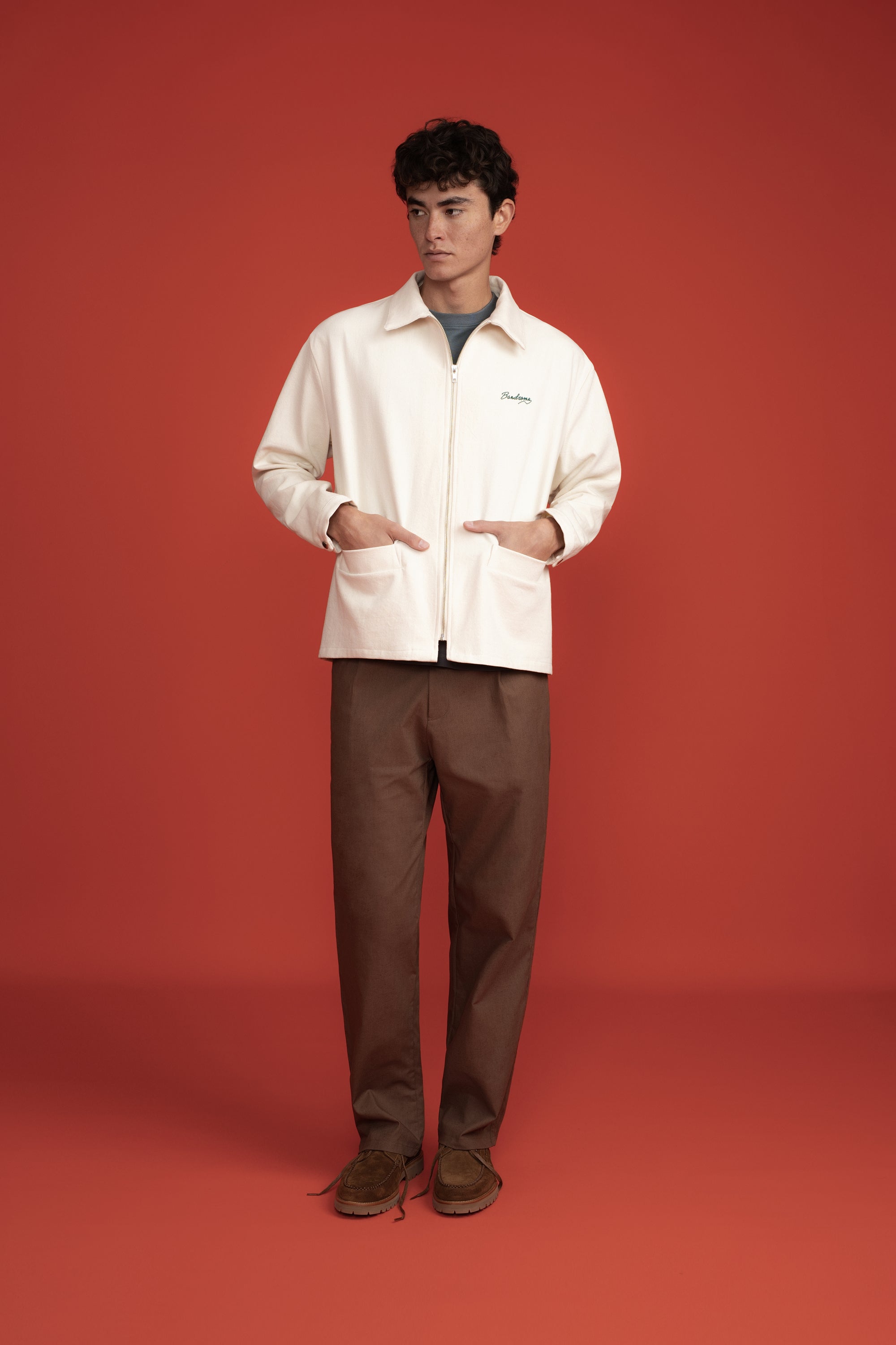 Bandsome LS Drill Zip Jacket in Camel Flower Smiley - Australian made organic cotton jacket