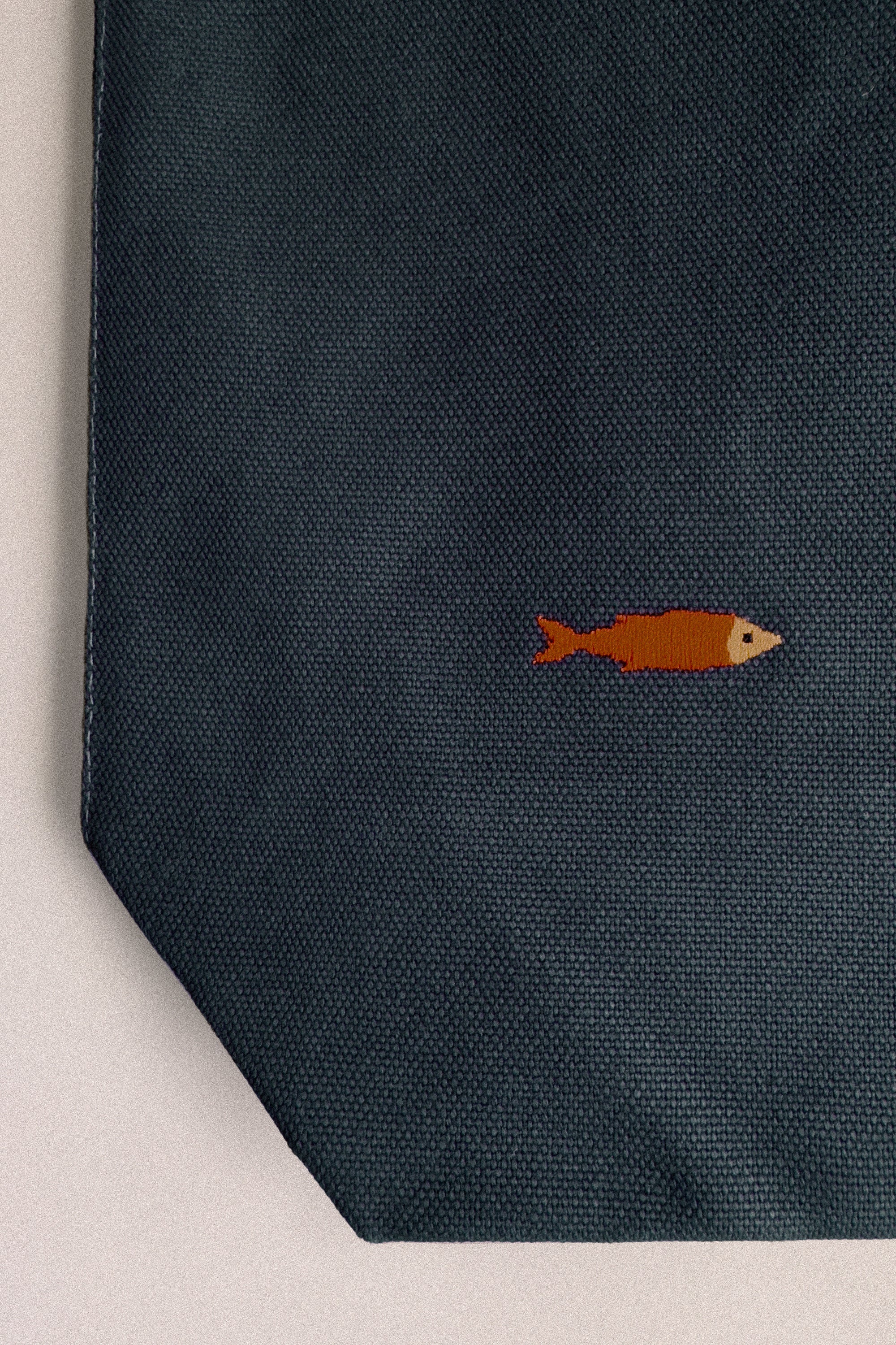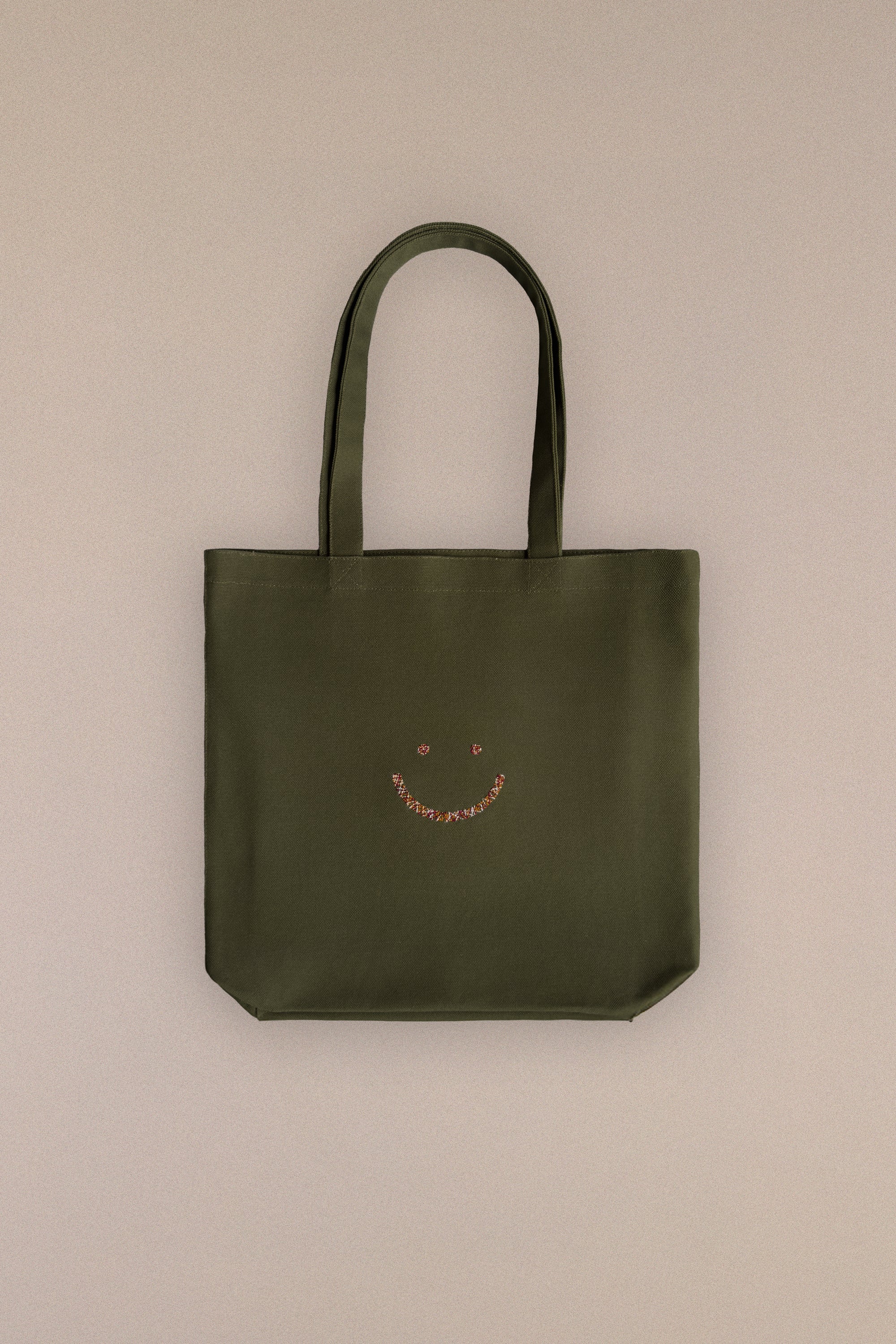 Tote Bag Triple Stitch Smiley Olive Canvas