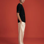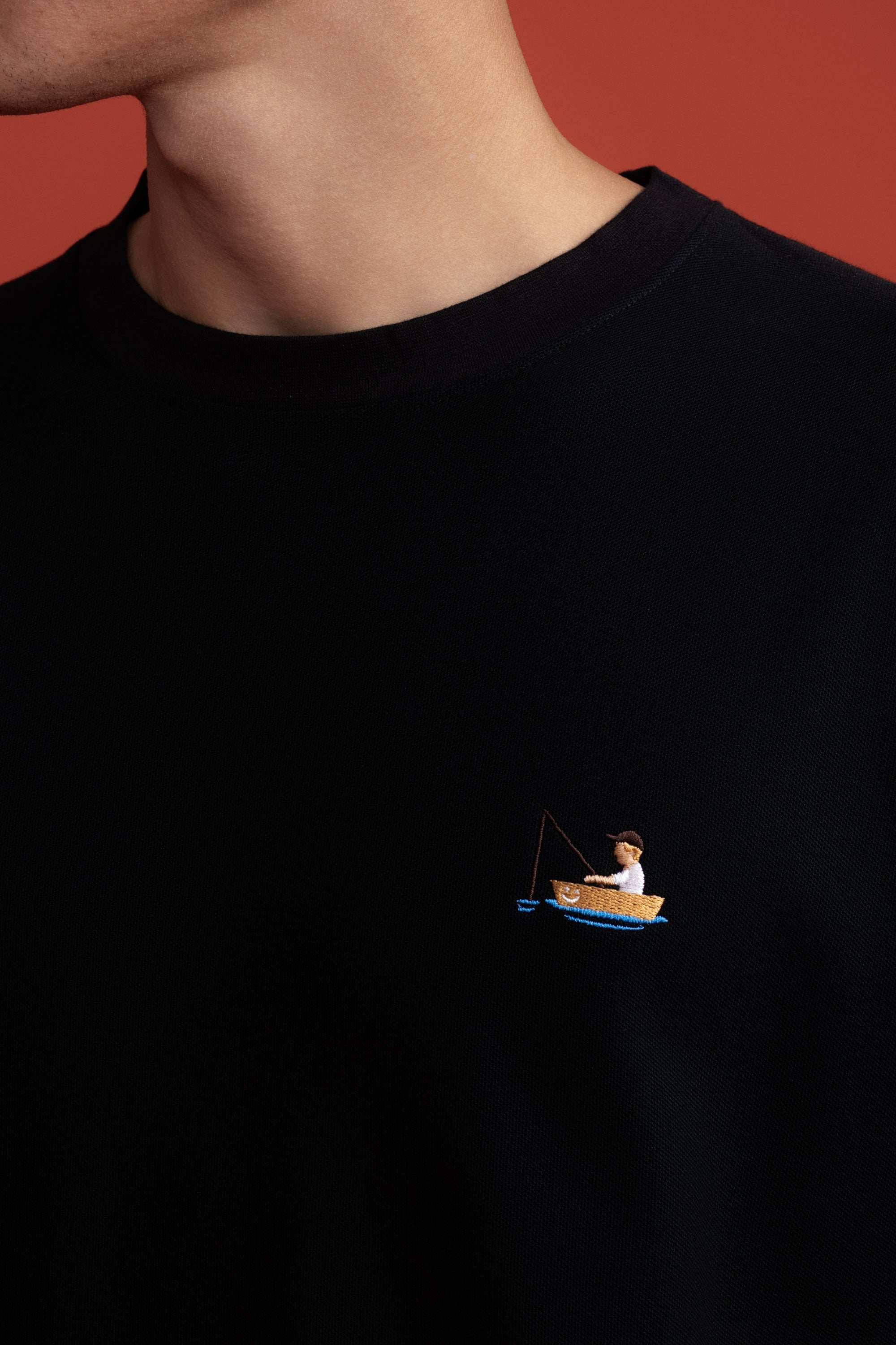 Our Pique T-Shirt 2.0 is a refined update to one of our most popular styles. Designed for everyday wear, it features a thick open ribbed neckline with topstitch detailing, contrast chain-stitched sleeves, and an overstitch finish on the body and hem. Cut to a regular, comfortable fit - neither too loose nor too tight - the silhouette is versatile and easy to style. Knitted locally in Melbourne, the organic cotton pique fabric offers a subtle textured hand feel reminiscent of classic polo cloth, combining both softness and structure. Finished with our Fisherman & Fish embroidery.