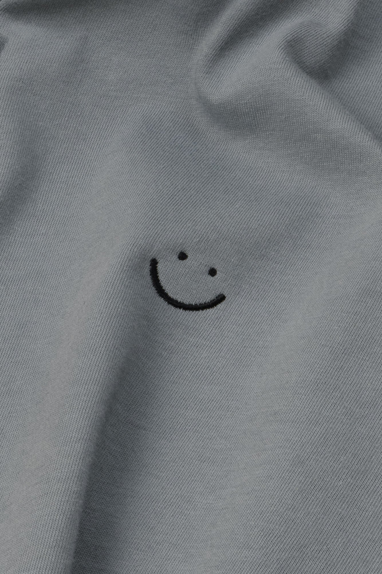 Our slim-fitting t-shirt features a curled raw rib neckline, unfinished edges on the sleeves and hem, and is made from GOTS certified organic cotton jersey. Pre-washed for a premium ready to wear finish, maintaining its shape and softness over time. Embroidered with our signature smiley. Designed and made in Australia.